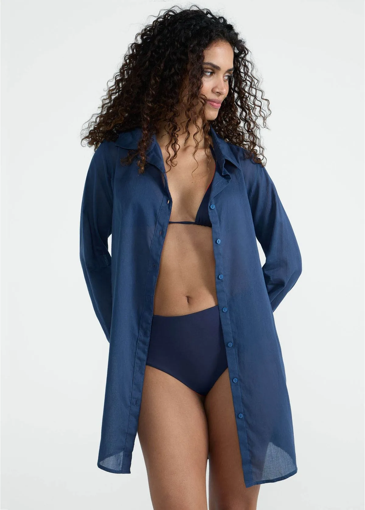Use o macacão para o treino e sobreponha a camisa azul noturno para transformar o visual em uma produção moderna. Ideal para quem vai direto do estúdio ao trabalho, sem perder a elegância.