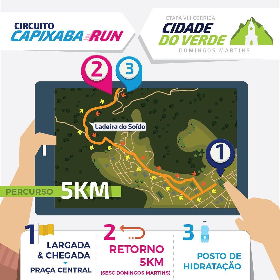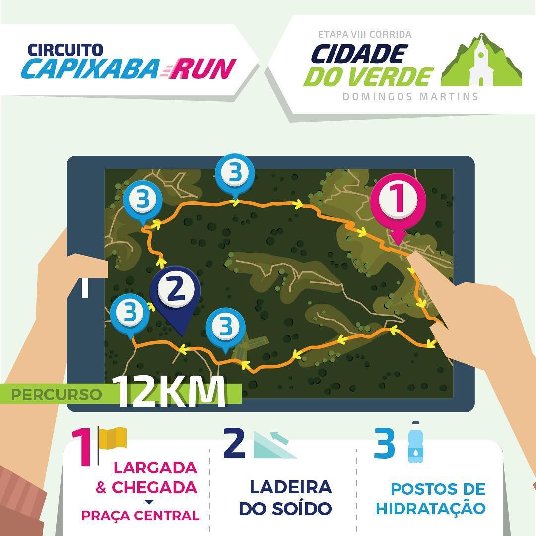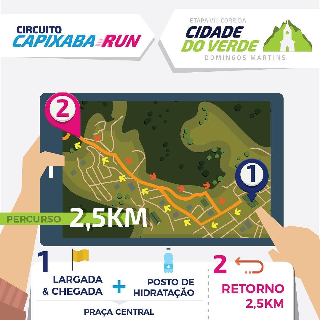 A abertura do Circuito Capixaba Run será no dia 26 de maio, com a Corrida Cidade do Verde, em Domingos Martins. Além da nova distância de 2,5km, para aqueles atletas que estão iniciando a vida esportiva e querem iniciar seu primeiro desafio em grande estilo, a prova terá as distâncias de 5km e 12km com percurso desafiador e aquela clima agradável para iniciar a competição do circuito em grande estilo. A largada será única, às 8 horas, na Praça Central de Domingos Martins.